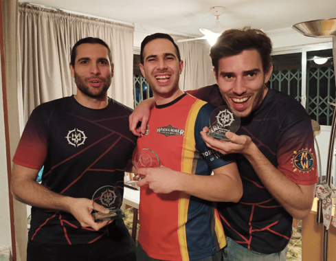 - Al enseñarnos los últimos enfrentamientos, en la conversación previa, Papalikas tuvo que cambiar toda la estrategia de su mazo ya que, si hacia void a Mollog, y Silver iba con las mejoras para el rival de los Trifold, no se podría quitar esas mejoras odiosas, por lo que lo dejaría completamente inútil. Y es aquí donde comentaba que estaba lo chulo de este formato. La estrategia, y en este caso concreto, la estrategia de los emparejamientos. Con todo el respeto a mis compañeros y al lector por las palabras, aquí la cagamos, y mucho, ya que al pobre Papalikas, entre todos y ninguno, le arruinamos la partida (sin querer quitar mérito a la partida presentada por Silver). Al final, dos activaciones de Mollog para quitarse las mejoras, y un cuarto de mazo sin poder utilizar ya que no era void quién tenía que ser. Bravo por mis rivales y su elección en el enfrentamiento.
