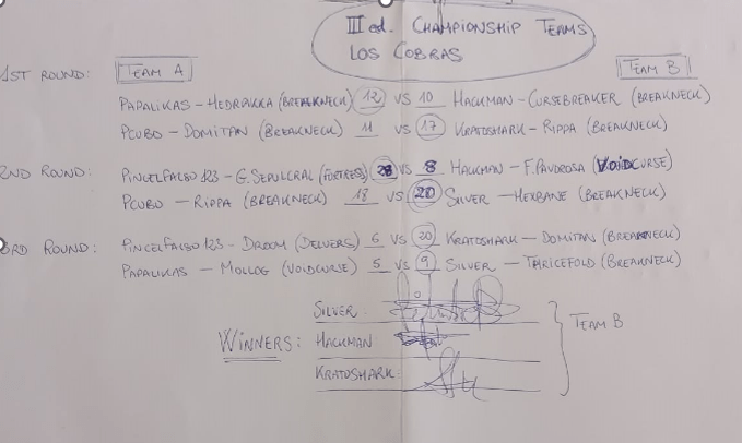 Con esta clasificación, y enlazando con la primera parte de este artículo, ya sabemos los equipos para el siguiente Cobras Team, Silver, Papa y Kratos VS Pincel, Hackman y Pcubo.