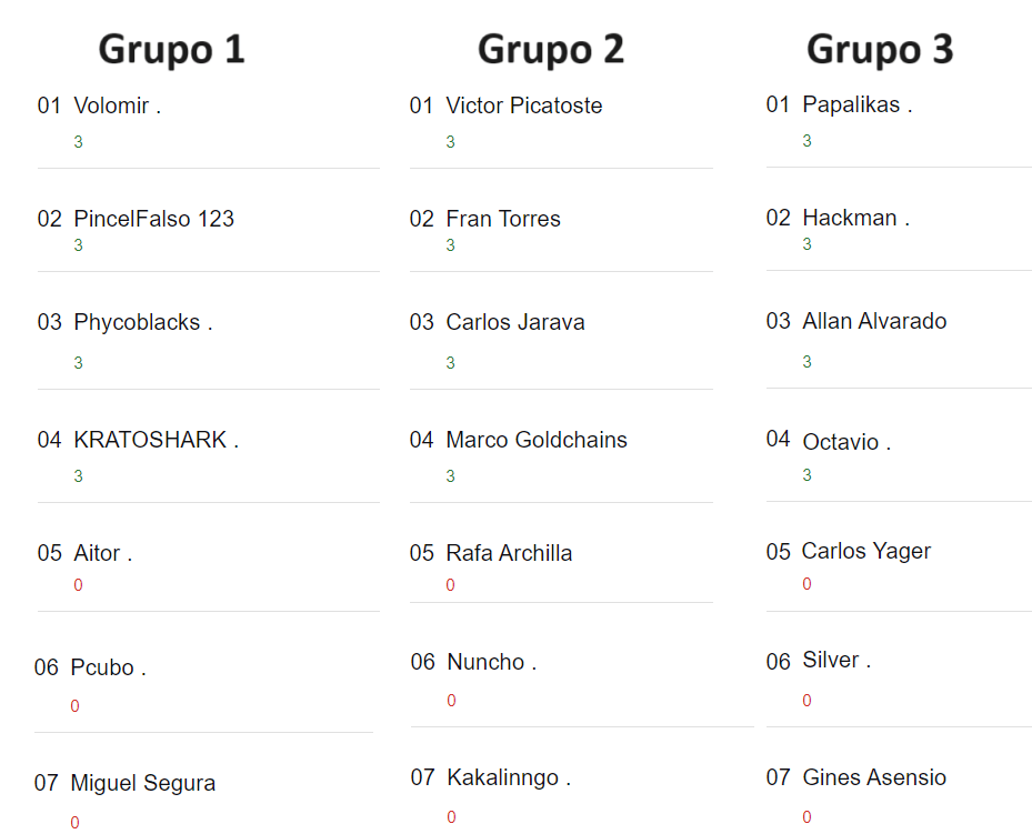 Tras los primeros enfrentamientos la clasificación de cada grupo queda del siguiente modo: