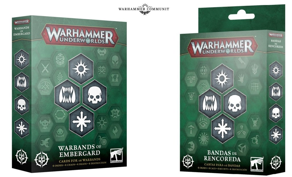 6. Set de cartas de bandas de gran alianza: es una caja con las cartas de las 16 bandas anteriores (las que se ven en las cuatro cajas) por si tienes las miniaturas y quieres jugar con ellas. Solo se venden en la página online de GW. Hay dos sets de 16: Bandas Bandas Embergard y Bandas Rencoreda. (47.5 euros)