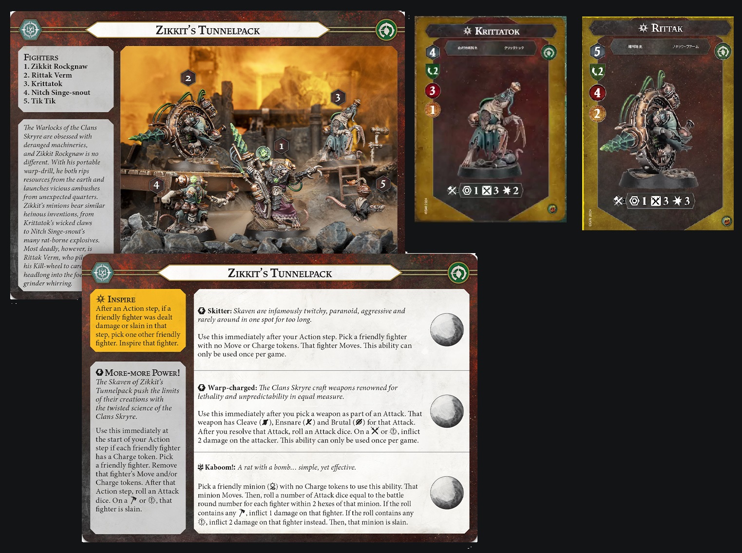 - Las bandas ya no tienen mazo propio de cartas. Además las cartas de guerrero no llevan reglas especiales. En su lugar, tienen una carta grande (Warscroll) con todas las reglas especiales de la banda.