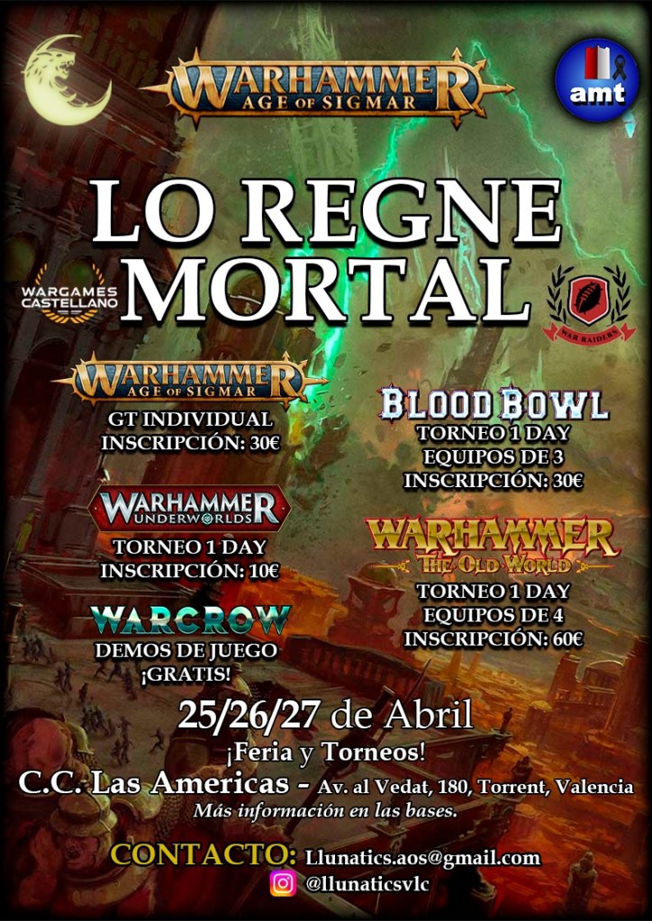 Hace un par de días (contados desde el momento en el que se publica esta entrada) se disputó la primera edición de un torneo de Warhammer Underworlds que, en los próximos tiempos, está llamado a ser importante: Lo Regne Mortals en Valencia del circuito llunatic tournaments. En esta primera intentona nos juntamos 14 personas (aunque íbamos a ser algunos más, pero siempre surgen cosas de última hora). Más allá del número de personas, que ya está muy bien para un torneo de Underworlds, lo importante fue la procedencia.