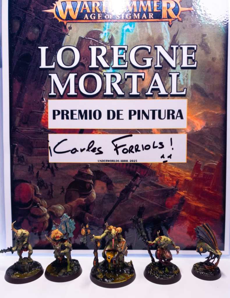 En cuanto a los premios a repartir, tuvimos 3 trofeos de cristal para el top 3, premio de pintura, vales de tienda y diversos sorteos de juegos de mesa. Mucha gente se llevó su pequeño botín a casa. El premio de pintura lo ganó Carlos Forriols con unos espectaculares y mugrientos Jardineros del Gran Padre.