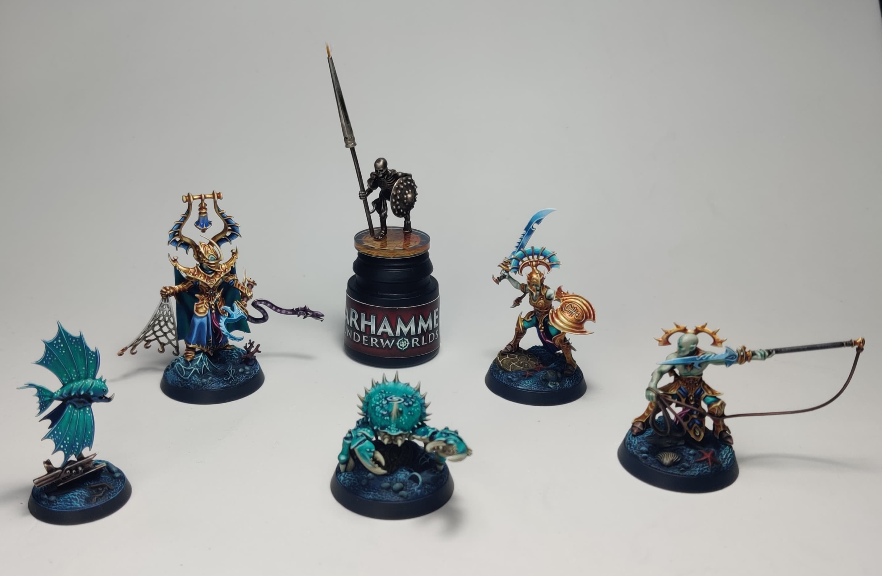 Como no podía ser de otro modo, también hubo premio de pintura. Muchas personas trajeron sus bandas pintadas y dos de ellas lo hicieron a un nivel estratosférico. La elección del ganador fue difícil pero finalmente fue Diégolas, con sus Elathain azul molón, el que se llevó el pez al agua (badum tss). Se le valoró el nivel excelente de pintura, el original esquema y la cohesión de la banda. Enhorabuena de mi parte. De premio se llevó una estatuilla de esqueleto bien maja y única, que elaboro personalmente cada año para la ocasión (si te mola, vente el año que viene con una banda pintada para ganarla). Alucinad con la foto ganadora (aunque en mano siempre impresiona más).
