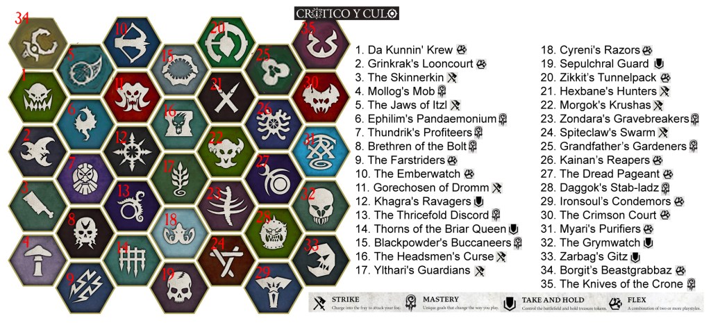 Aquí tienes aquellas bandas que, de forma oficial, están permitidas en los torneos. Esto es así porque, a priori, el equipo de diseño del juego ha creado las reglas, cartas y demás buscando que estas bandas estén equilibradas y ofrezcan una experiencia de juego justa. Es de esperar que sean bandas que reciban actualizaciones para equilibrarlas cuando no lo estén. La lista de bandas «legales en competitivo» (a fecha de marzo 2025) es la siguiente: