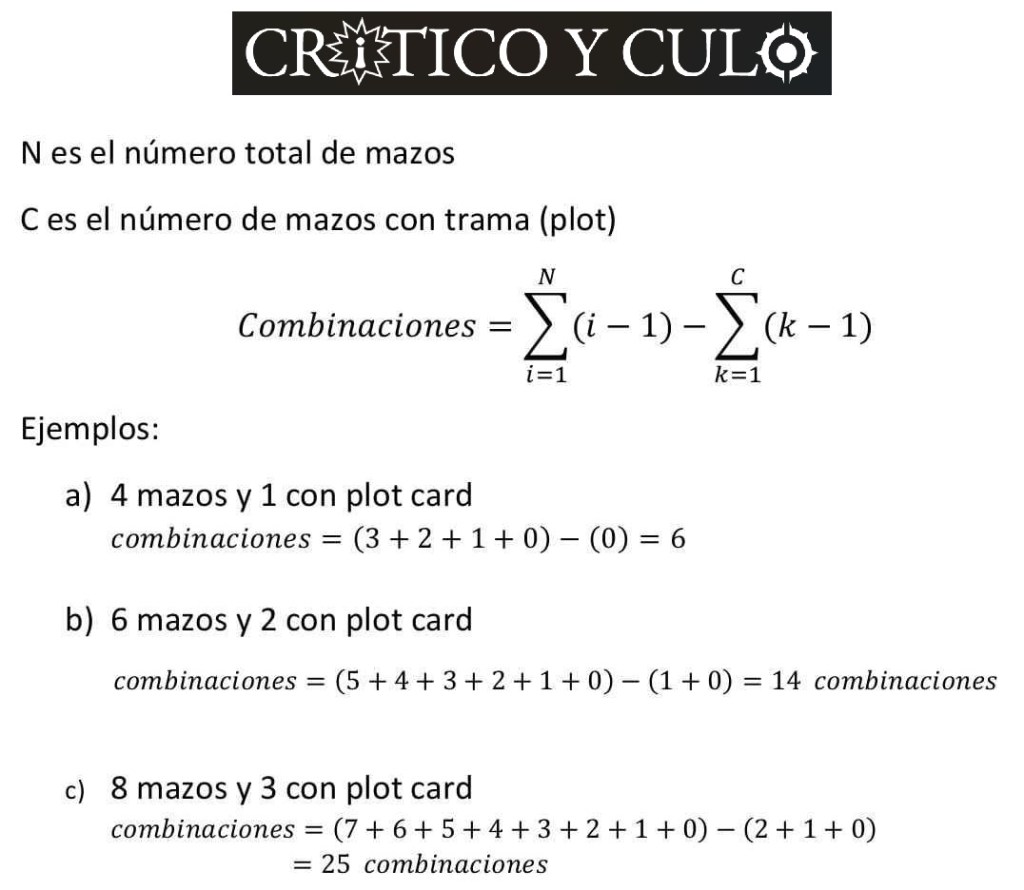 Los mazos legales en competitivo actualmente los dividiremos en mazos Rivals con trama (reglas especiales) y mazos Rivals sin trama (sin reglas especiales). El número de combinaciones que permite este formato se puede calcular de la siguiente manera: