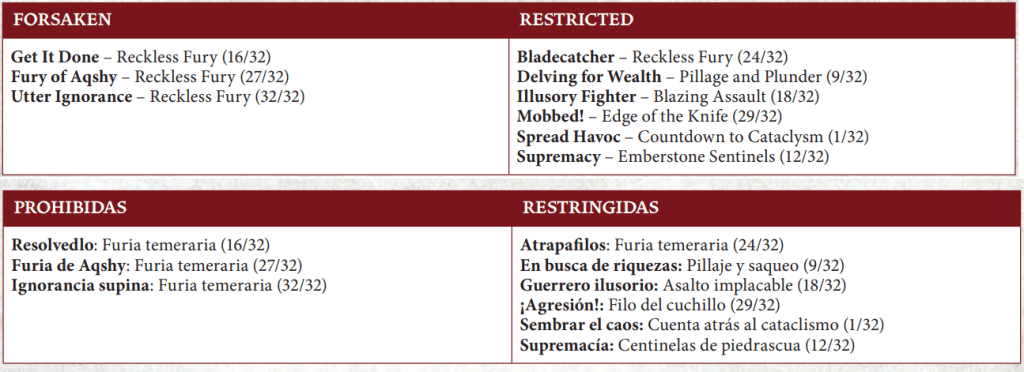 En esta página tienes todo lo necesario para estar al día del juego competitivo en formato Némesis. A saber, bandas permitidas, mazos en rotación, FAQS, etc…